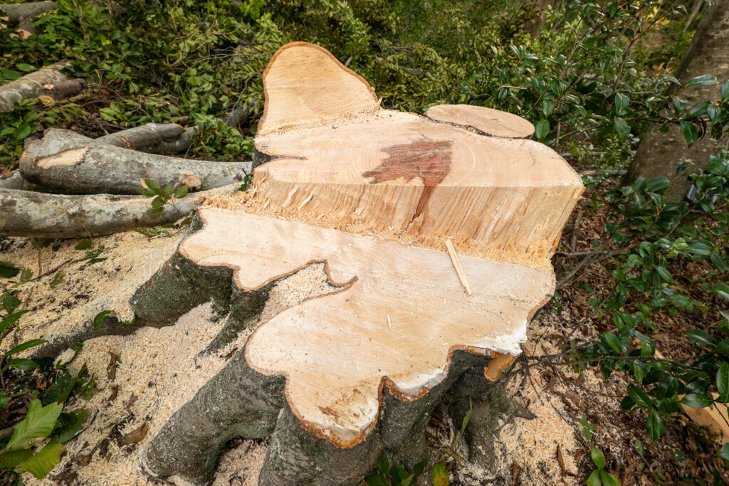 写真は、新潟県魚沼市大白川で間伐したブナの木の切り口です。