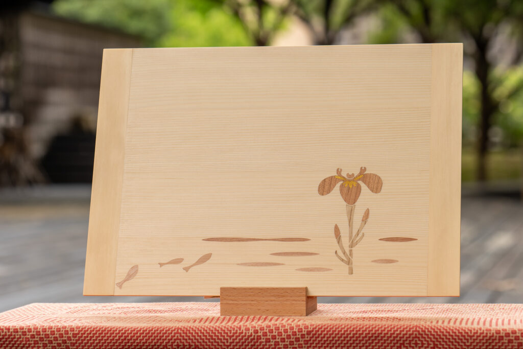 色味の異なる樹種を、嵌(は)め合わせ、図柄を象(かたど)る「木象嵌(もくぞうがん)」は、古来から伝わる日本の伝統技術のひとつです。